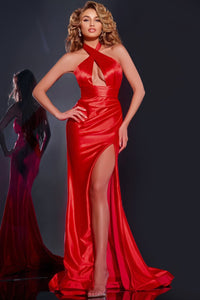 - Satin Fitted Halter Slit Gown by Jovani 42822
