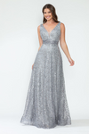 Turn heads and steal the spotlight in this breathtaking Lenovia 8217 sequin evening gown. Designed to flatter every curve, this sleeveless A-line dress features a deep V-neckline and a fitted bodice adorned with shimmering sequins that cascade into a soft, flowing skirt. The full-length mesh overlay is richly embellished with dazzling glitter and sequin detailing, creating a captivating, radiant effect with every step.
