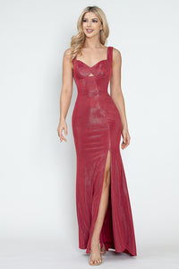Shimmer Cutout Bodice Sleeveless Formal Corset Dress with Lace-Up Back and High Slit By Lenovia 5315