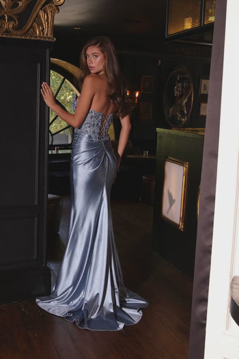 Silver A-Line Evening Dress Applique Sleeveless Corset Gown by Juliet 295