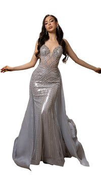 Sparkling Beaded Mermaid Evening Gown with Sheer Corset by Royal Queen RQ8208