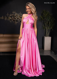 Rachel Allan 70689 Taffeta Halter A-line Slit Gown
