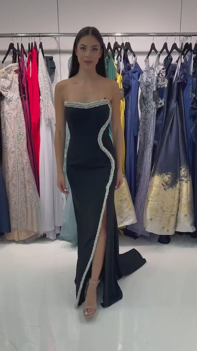 Enter your location at checkout to see available shipping methods and costs for Terani Couture 241e2437 Strapless Beaded Evening Gown | Long Mermaid Prom Dress in your area.